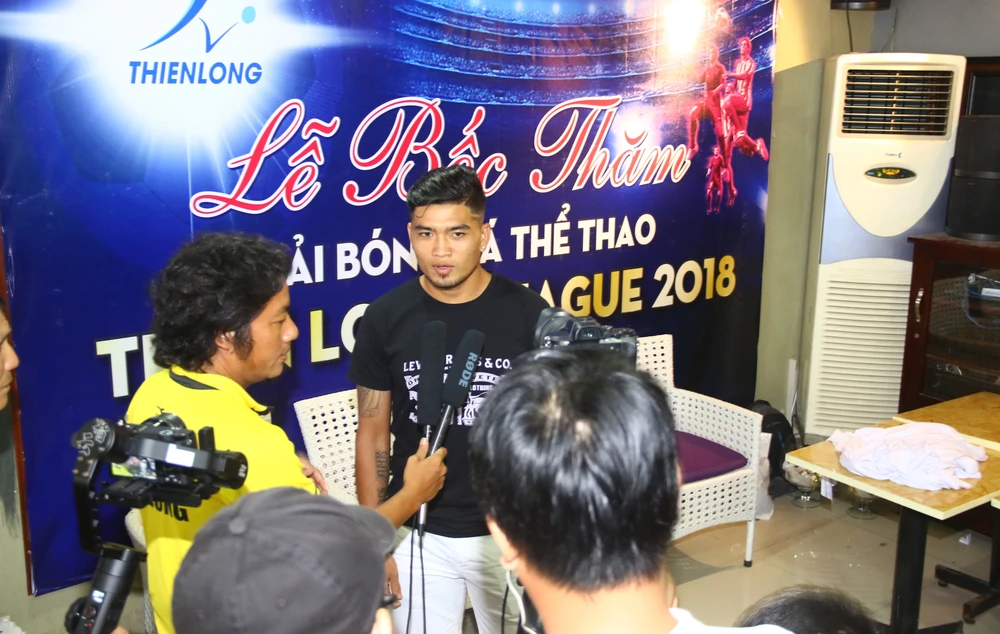 Cầu thủ Quốc Anh của đội BAR 268 Mỹ Tho trả lời tại cuộc họp báo