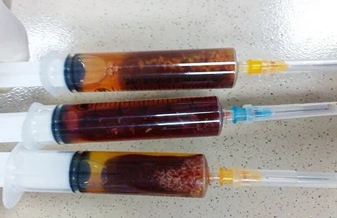 Điều đặc biệt là dịch màng tim của cháu bé có màu vàng, lẫn nhiều sợi trắng và mảnh, nhìn như đốt sán. Kết hợp với dấu hiệu bạch cầu trong máu tăng cao, các bác sĩ nghi ngờ cháu bé bị nhiễm ký sinh trùng. Tiếp tục xét nghiệm dịch màng ngoài tim thì phát hiện bệnh nhân nhiễm sán lá gan lớn.