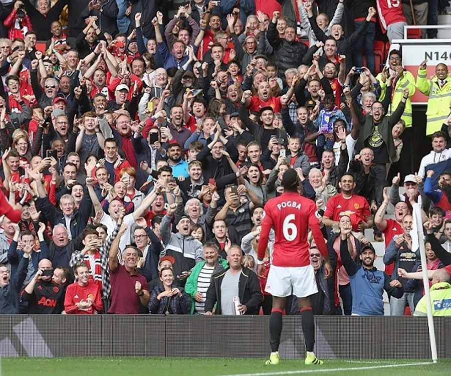 Pogba của MU hưng phấn khi Old Trafford đón hơn 72.000 khán giả vào sân. Ảnh: GETTY IMAGES