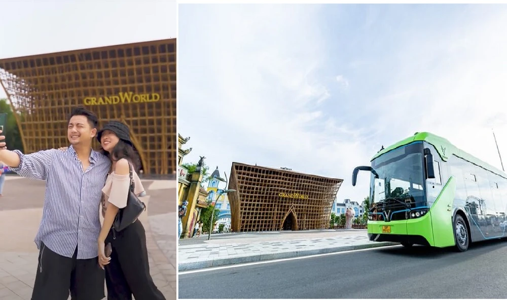 Sau khi nhận phòng khách sạn, cặp đôi nhanh chóng di chuyển sang Grand World bằng xe tuk tuk. Đương nhiên dịch vụ này là miễn phí cho mọi du khách lưu trú ở Vinpearl.