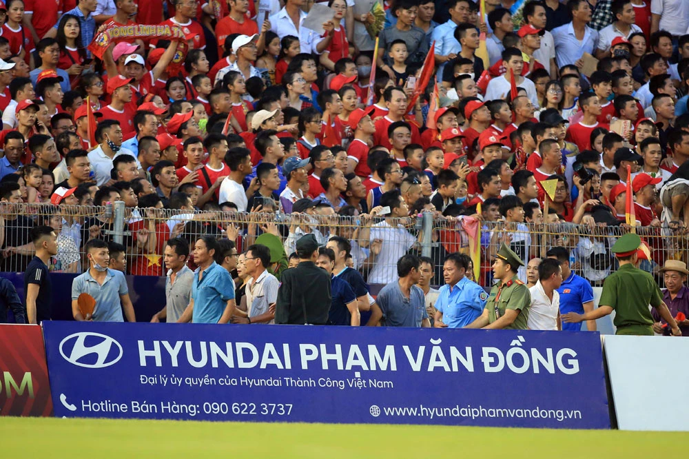 Sự cố xảy ra tại trận đấu vòng 4 V-League, đội chủ nhà tiếp đón ĐKVĐ Hà Nội vào ngày 12-6, BTC sân Hà Tĩnh bất lực khi để hàng ngàn khán giả tràn xuống đường piste. Sau 20 phút bóng ngừng lăn để lực lượng an ninh mời lượng lớn khán giả ra khỏi sân, trận đấu được tiếp tục trở lại và kết thúc với tỉ số hòa 1-1.