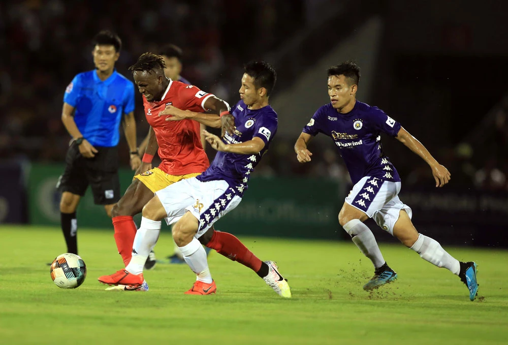 Cuộc đối đầu giữa Hồng Lĩnh Hà Tĩnh và Hà Nội kết thúc với tỉ số hòa 1-1. ẢNH: VPF