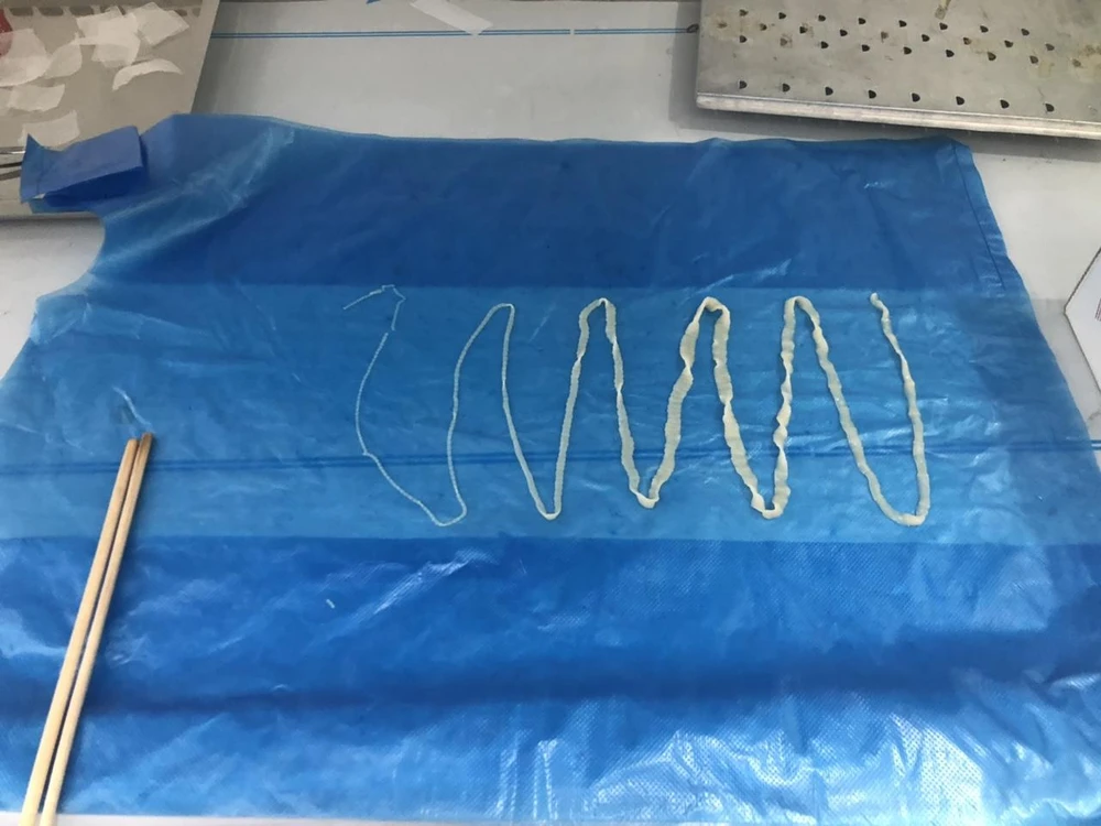 Con sán dây dài 2m ký sinh trong ruột người đàn ông. Ảnh: BSCC
