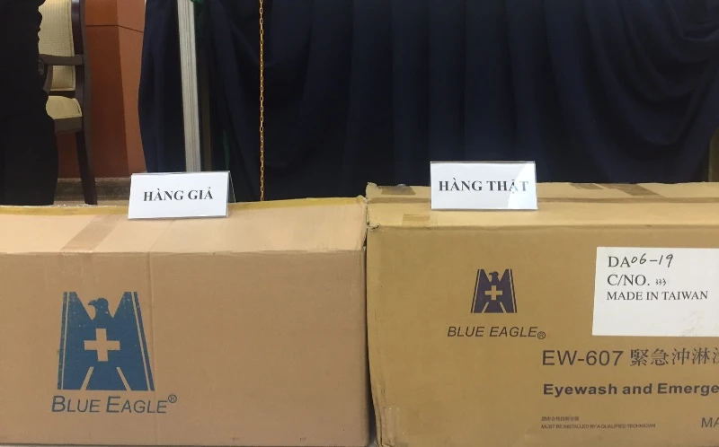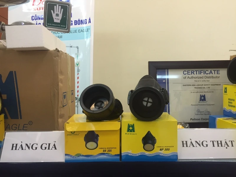Bà Nguyễn Thị Tuyết Phương, Giám đốc Công ty TNHH Thương mại Thiết bị bảo hộ lao động Đông Á, nhà phân phối chính thức thương hiệu Blue Eagle tại Việt Nam, cho biết bồn rửa mặt khẩn cấp và mặt nạ phòng độc của công ty bị làm nhái, làm giả nhiều nhất.