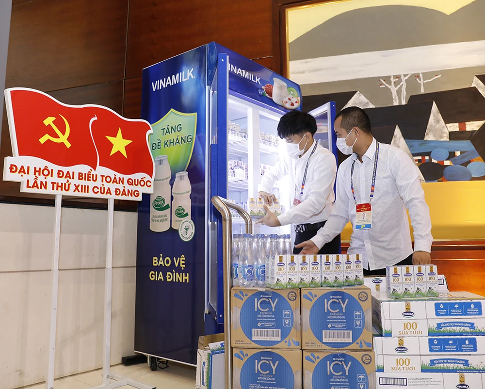 Các sản phẩm Vinamilk được đảm bảo phục vụ liên tục, đầy đủ trong suốt thời gian diễn ra sự kiện Đại hội Đảng lần thứ XIII
