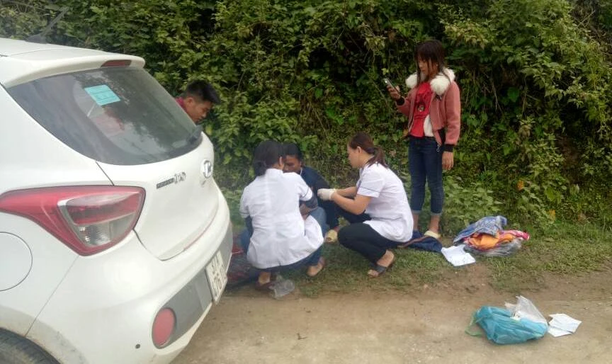 Sau khi được y sĩ Nhung cắt, buộc dây rốn cho bé và làm các thủ tục cần thiết, chị Phoải cùng con đã lên xe taxi đến Trạm Y tế xã Hữu Lập để được chăm sóc sức khỏe.