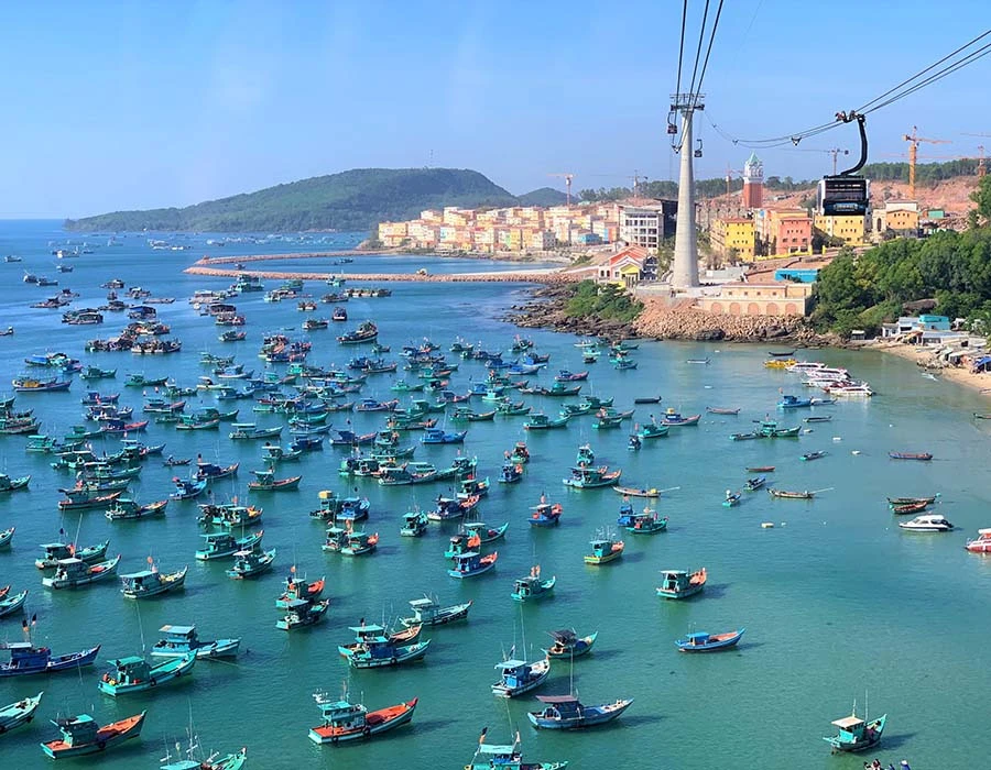 Điểm du lịch cáp treo Hòn Thơm, Phú Quốc (Kiên Giang) sẵn sàng đón du khách có hộ chiếu vaccine. Ảnh: TÚ UYÊN