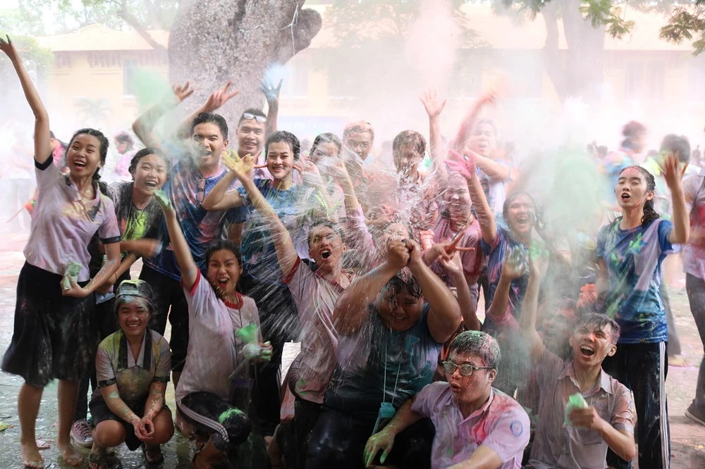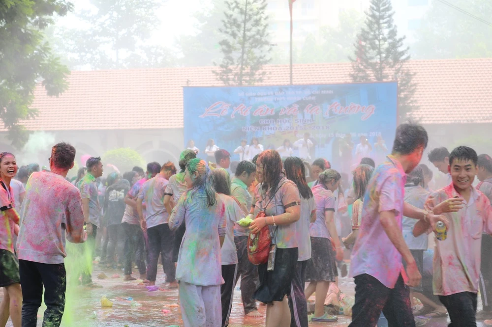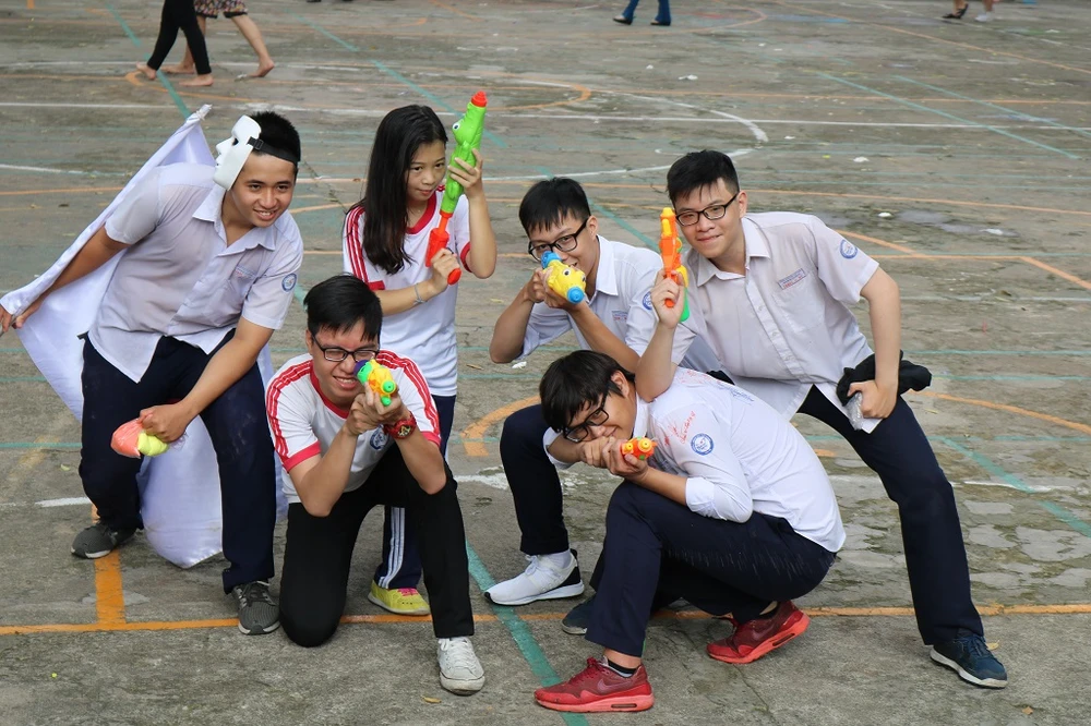 Súng nước là “đạo cụ” yêu thích sử dụng trong lễ hội. Học sinh khối 12 đã có cơ hội được vui chơi cùng bạn bè, giải tỏa những căng thẳng, mệt mỏi trong năm học và chuẩn bị tinh thần cho kì thi THPT quốc gia sắp tới.