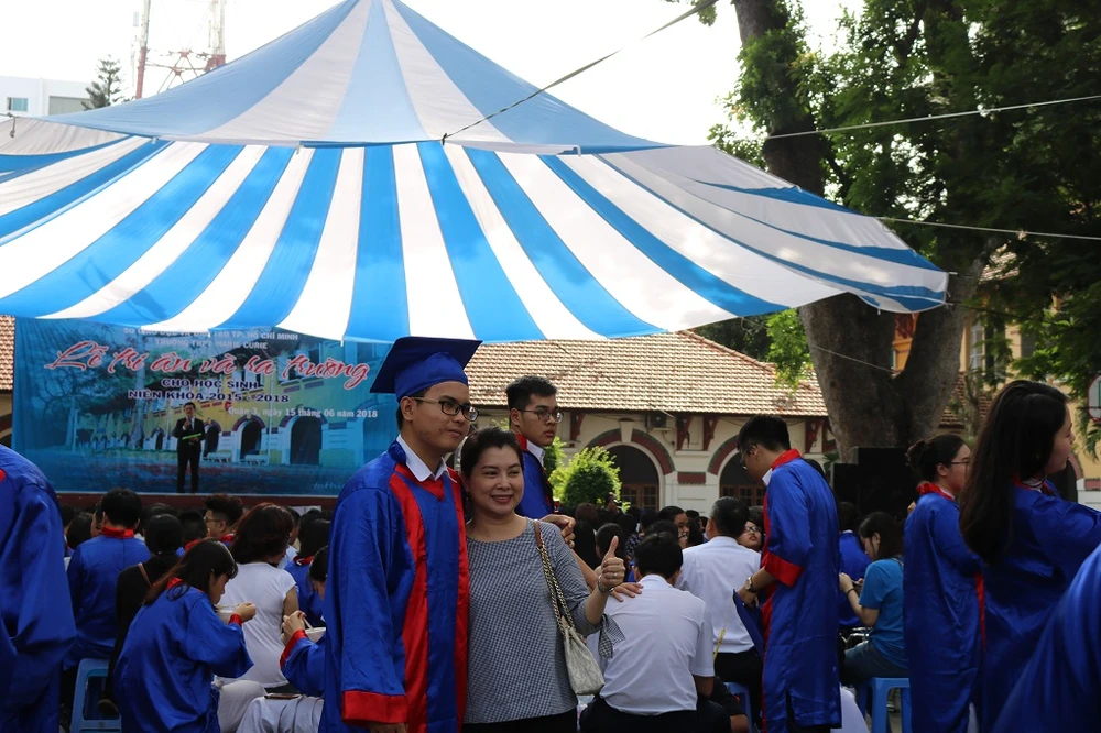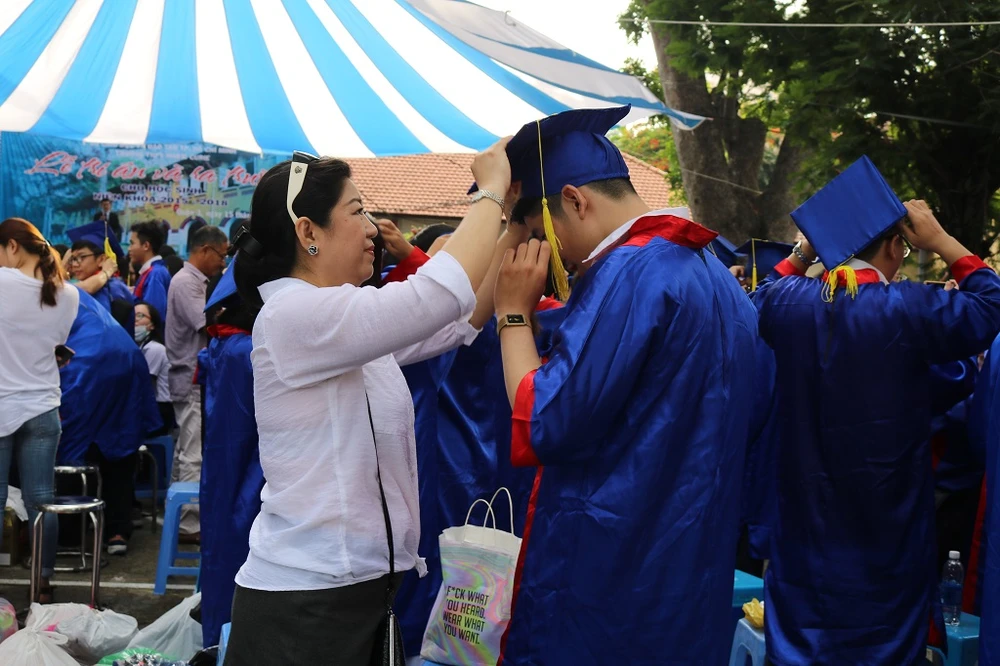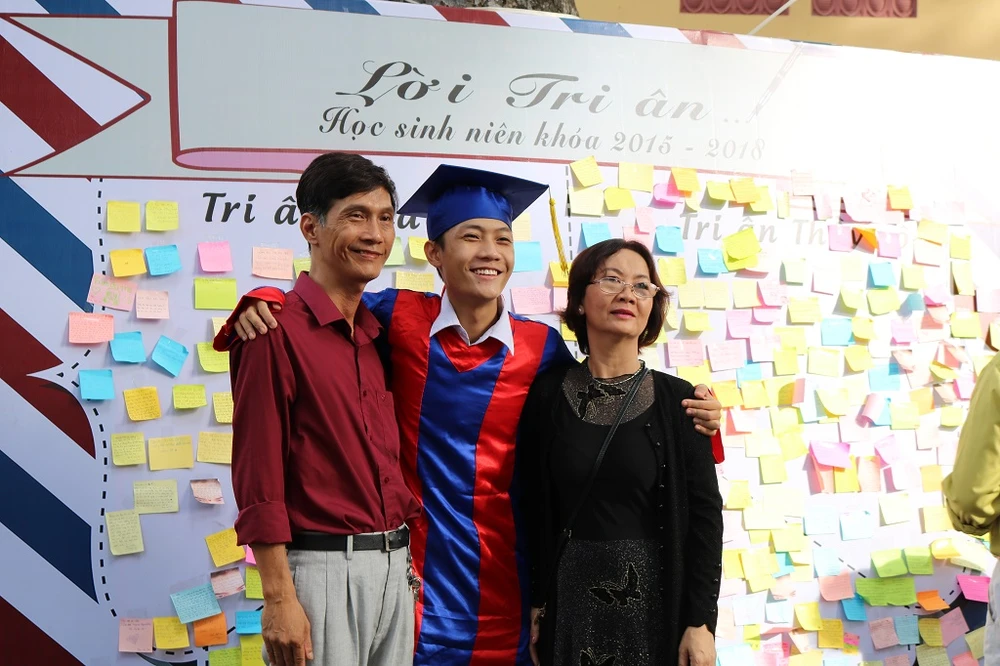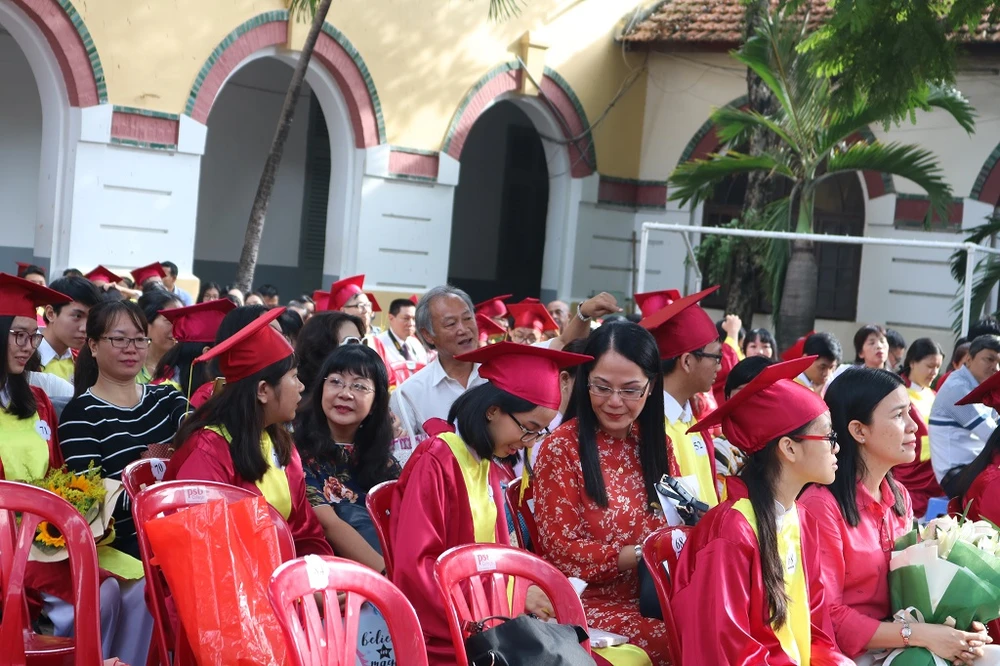Các bậc phụ huynh đã đến từ sớm để có thể cùng con tham gia buổi lễ quan trọng và cuối cùng trong cuộc đời học sinh. Không gian tràn ngập trong tình thương, tình thầy trò và tình bạn.