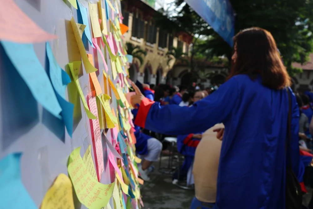 Những ước mơ, lời nhắn gửi đến gia đình, thầy cô và bạn bè được gửi gắm bằng những mảnh giấy đầy sắc màu.