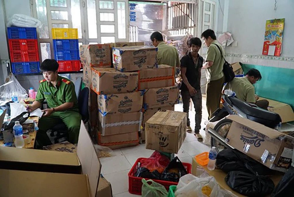 Một số lượng lớn hàng hóa, nguyên phụ liệu và thiết bị có liên quan phục vụ việc sản xuất bị cảnh sát tạm thu, lập biên bản xử lý.