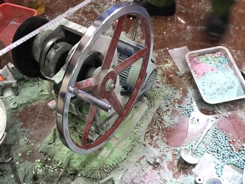 Tiếp tục truy xét tại “xưởng” ma túy ở quận 12, công an thu giữ khoảng 3.000 viên ma túy tổng hợp các loại. Hàng ngàn viên ma túy thành phẩm được đóng gói trong các thùng xốp. Ngoài ra còn có nhiều can nhựa chứa hóa chất, phụ gia, cân tiểu ly... để ép, chế tạo ma túy.