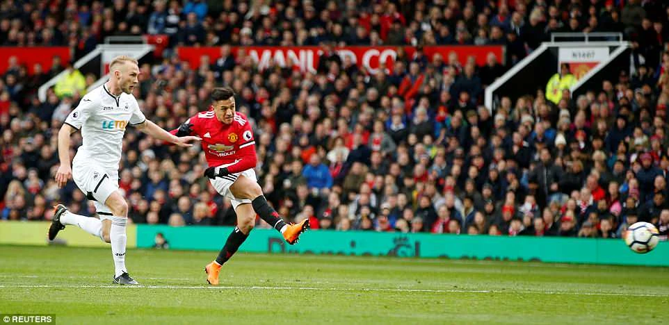 Phút 20, Lingard có pha chuyền bóng thông minh loại bỏ cả hàng thủ Swansea cho Sanchez thoát xuống dứt điểm nhanh và tinh tế, bóng đi chìm vào góc khiến pha bay người của Fabianski trở nên vô vọng. 2-0 cho MU.