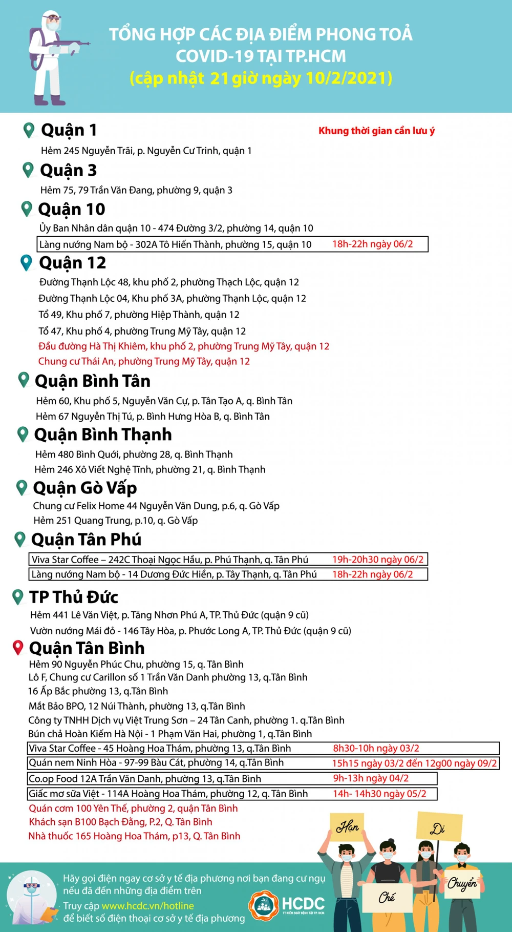 Các địa điểm phong tỏa bổ sung trong ngày 10-2: