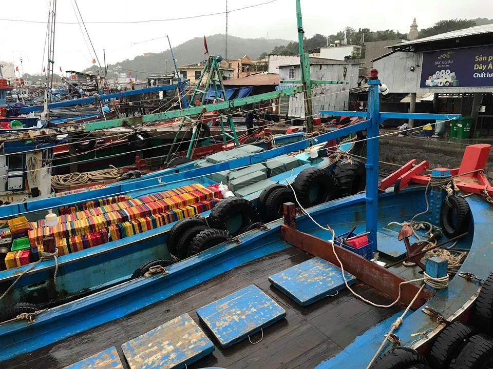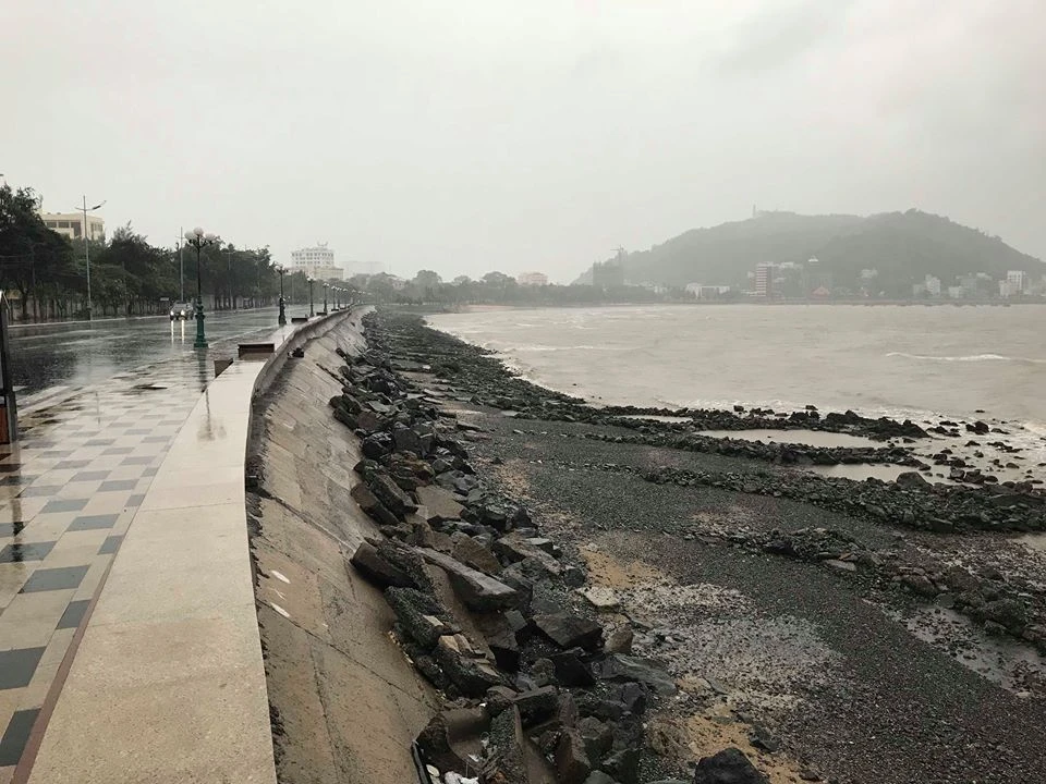 Lúc 7 giờ: TP Vũng Tàu có gió giật mạnh hơn, mưa cũng lớn hơn. Ở cảng Bến Đình, hầu hết tàu thuyền đã neo đậu, không hoạt động. Đường sá cũng thưa người qua lại, chỉ một vài tiệm tạp hóa, hàng quán mở bán.