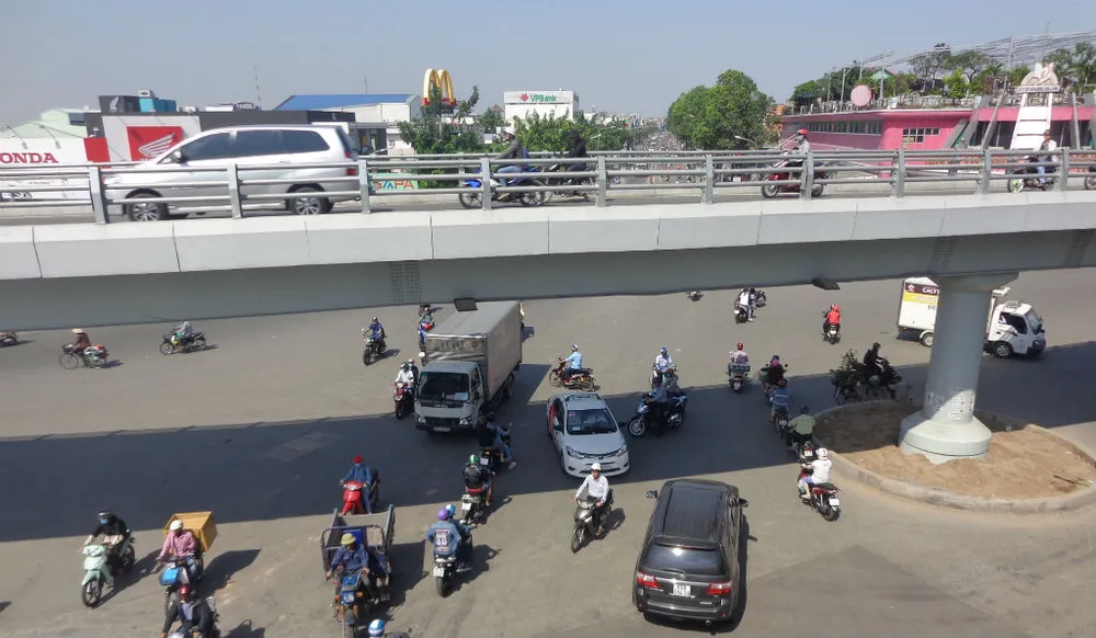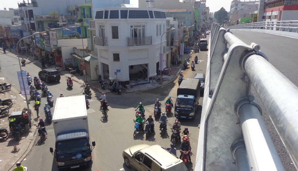 Cầu vượt ngã sáu hoàn chỉnh, đi lại phía trên và phía dưới giao lộ trở nên thông thoáng dù là vào giờ cao điểm đi lại. (Ảnh chụp lúc 7 giờ 30 sáng 30-10)