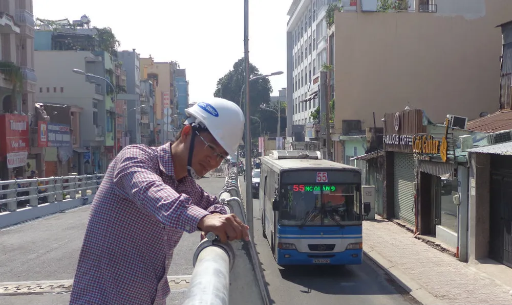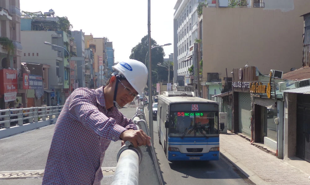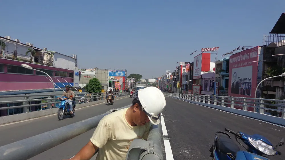 Đuôi chữ Y nơi tiếp giáp giữa nhánh từ Nguyễn Oanh lên mặt cầu vượt và nhánh từ Phạm Ngũ Lão được kiểm tra, hoàn thiện trong sáng 30-10.