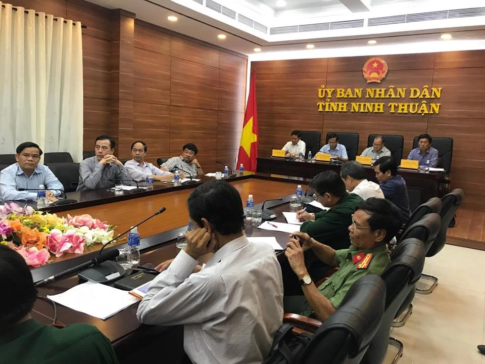 Họp trực tuyến phòng chống bão số 12 tại đầu cầu UBND tỉnh Ninh Thuận. Ảnh: Đức Hiển
