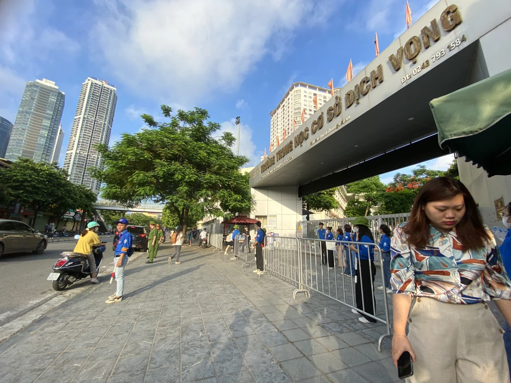Ở điểm thi trường THCS Dịch Vọng (Hà Nội), từ sáng sớm lực lượng công an đã túc trực để điều phối giao thông tránh để ùn tắc ảnh hưởng đến các thí sinh. Rào chắn barie được dựng lên dọc ven vỉa hè dẫn vào trường để đảm bảo khu vực đỗ xe của phụ huynh cách xa điểm thi.