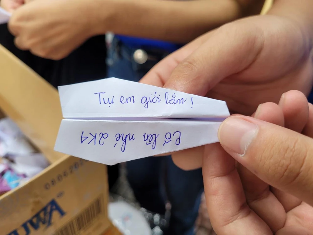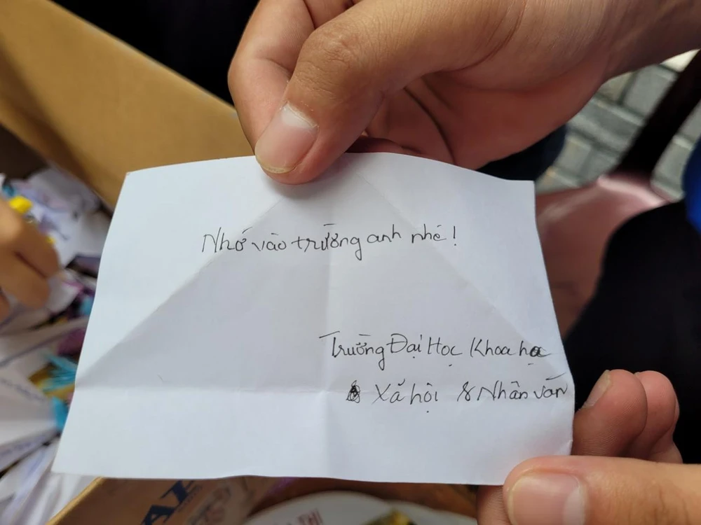 Tại điểm thi trường THPT chuyên Trần Đại Nghĩa, sinh viên tình nguyện đã tiếp sức cho sĩ tử bằng những lời chúc rất dễ thương.