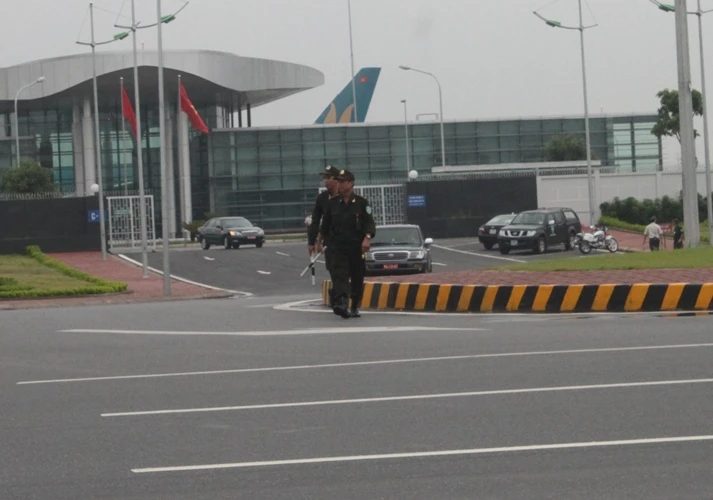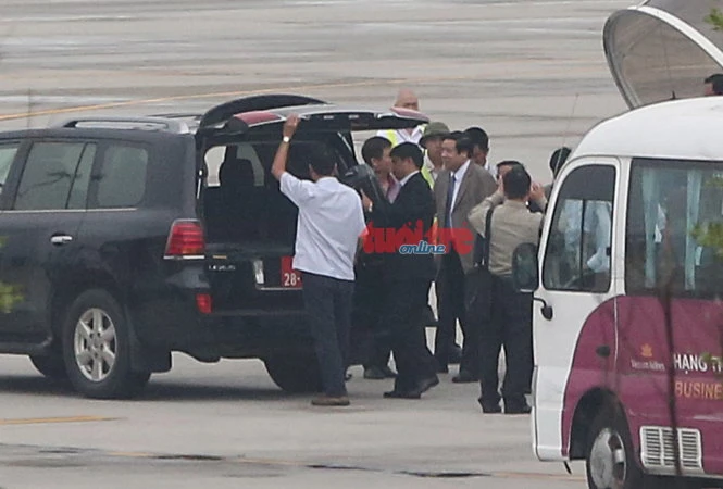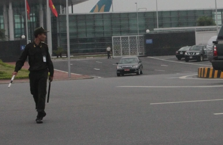 Xe chở Đại tướng Phùng Quang Thanh, Bộ trưởng Bộ Quốc phòng rời sân bay về Hà Nội. Ảnh: Đặng Trung-Tuyến Phan