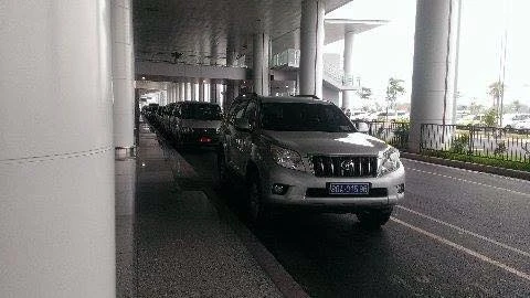 Đoàn xe công vụ chờ đón Bộ trưởng Phùng Quang Thanh. Ảnh: Đặng Trung-Tuyến Phan.
