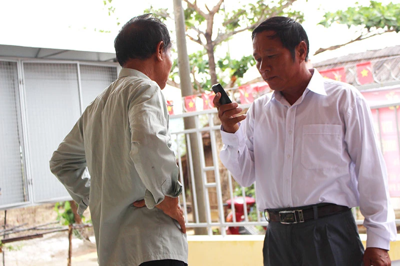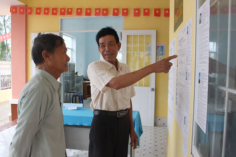 Cử tri ấp Thiềng Liềng xem lại tiểu sử của ứng cử viên trước giờ bầu cử. Ảnh:LÊ THOA