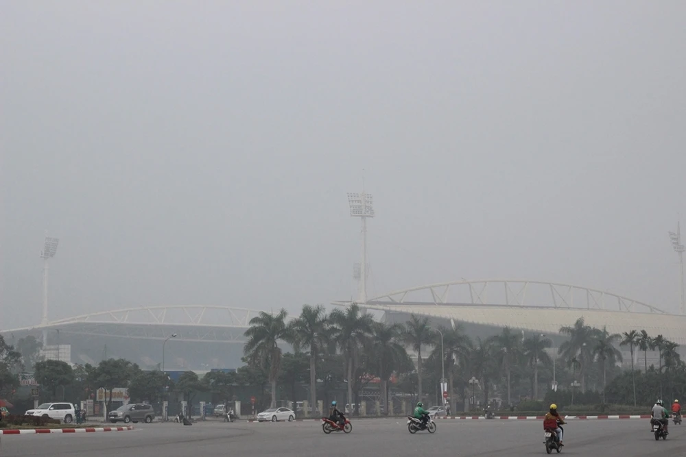 Khu vực sân vận động Mỹ Đình cũng bị sương bao trùm.