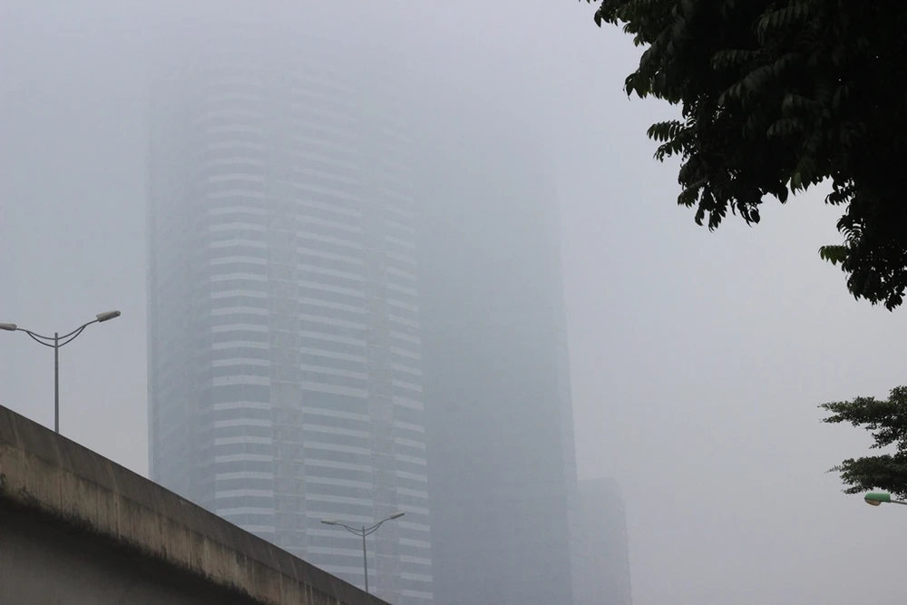 Sáng 11-11, bầu trời Hà Nội chìm ngập trong sương mù. Màn sương mù dày đặc bao quanh mọi tuyến đường của thủ đô.