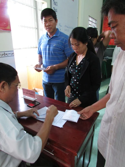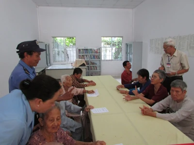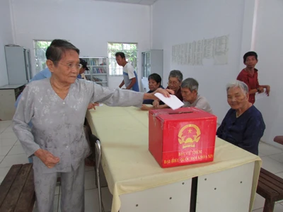Những cụ còn sức khỏe, đi lại được thì ra nơi tập trung để bỏ phiếu... Ảnh: N.NAM