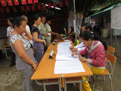 Chưa tới 7 giờ sáng nhưng khu vực bỏ phiếu số 9, phường Trà Nóc, quận Bình Thủy đã có rất đông cử tri đến làm thủ tục nhận phiếu bầu để bầu thêm một ĐBQH thuộc đơn vị bầu cử số 2. Ảnh: N.NAM