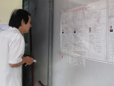 Cử tri rà lại thông tin về từng ứng cử viên ĐBQH để lựa chọn người ưng ý nhất trước khi bỏ phiếu. Ảnh: N.NAM