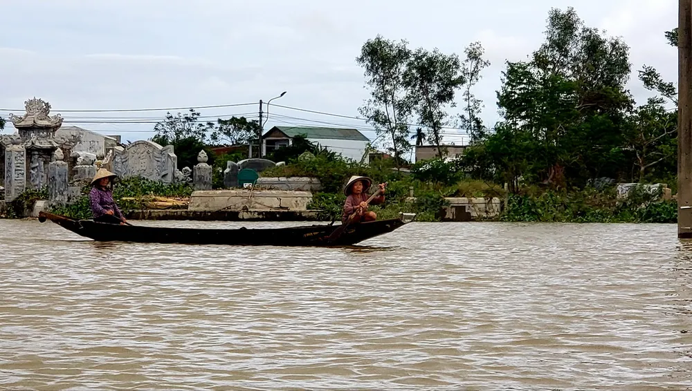 Nhiều nơi tại Huế hiện vẫn ngập sâu khiến cuộc sống của người dân gặp nhiều khó khăn. Ảnh: T.AN