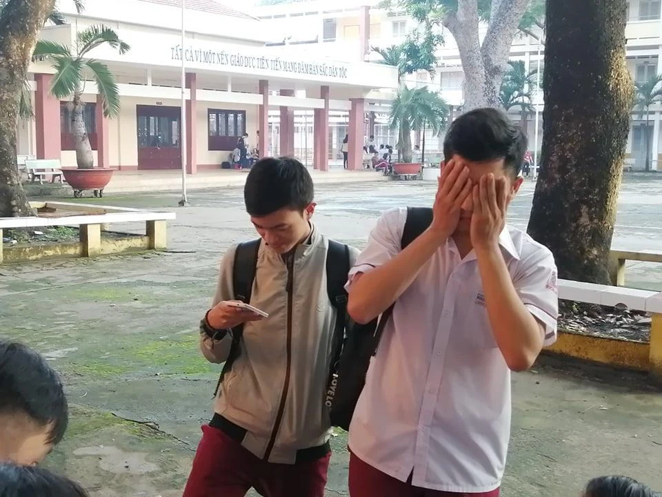 Tại điểm thi THPT Tam Phú (Thủ Đức) các thí sinh đang ôn bài trước khi thi tổ hợp môn tự nhiên