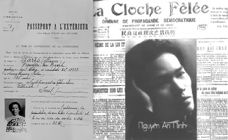 Hộ chiếu của Nguyễn An Ninh năm 1925, lúc ông sang Pháp đón cụ Phan Châu Trinh về nước. Cụ Nguyễn An Ninh trên báo Pháp. Ảnh: Gia đình cung cấp