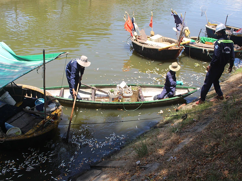 Trao đổi với báo Pháp Luật TP.HCM, ông Trần Trung Nam, Phó phòng TN-MT quận Thanh Khê, cho biết hiện phòng đã vớt được hơn 500 kg cá. Đồng thời, trong sáng nay phòng đã lấy mẫu để tiến hành phân tích xác định nguyên cá chết.