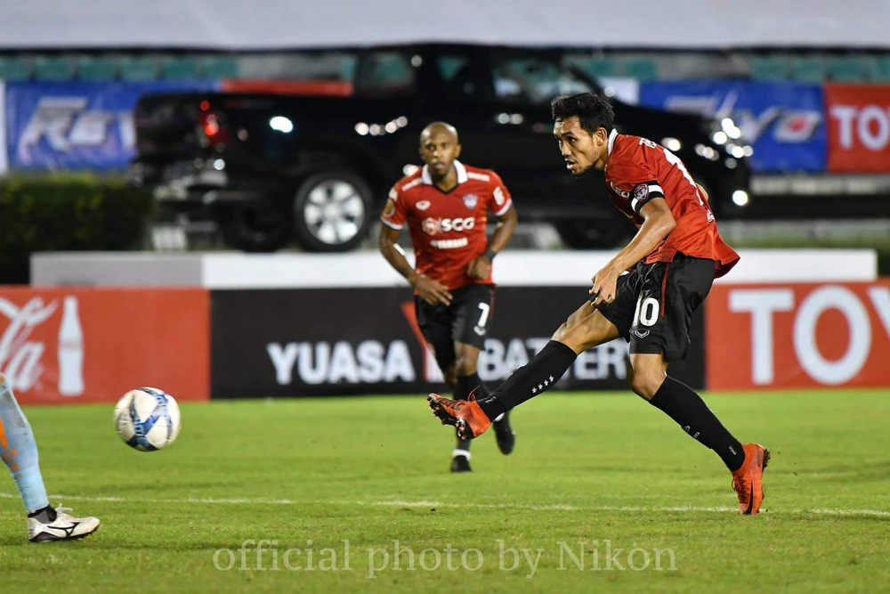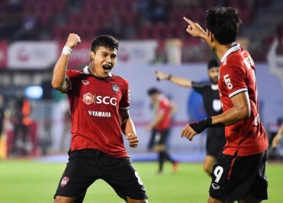 Totsawat (trái) mở bàn cho Muangthong