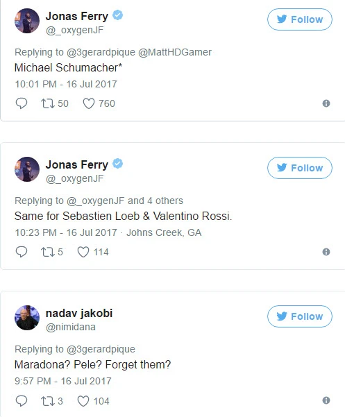 Pique viết trên Twitter, “Lionel Messi, Michael Jordan, Roger Federer. Những người giỏi nhất mà tôi từng thấy”. Tuy nhiên, lời chúc này của Pique lại vấp phải tranh cãi và cả chỉ trích dữ dội từ người hâm mộ.
