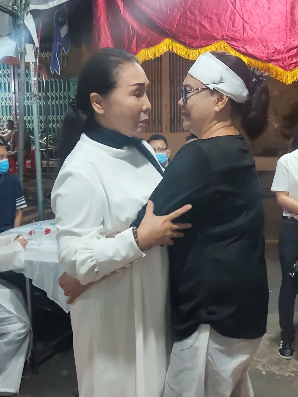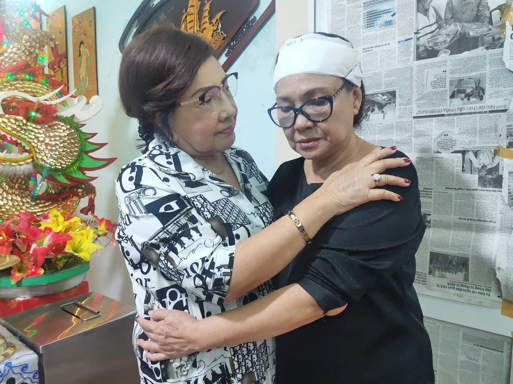 Nghệ sĩ Bạch Tuyết động viên nghệ sĩ Tô Kim Hồng - phu nhân cố nghệ sĩ Nam Hùng. Ảnh: HÒA BÌNH.