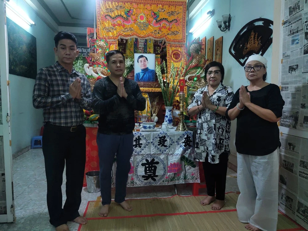 Nghệ sĩ Hữu Quốc, Thoại Miêu và Thoại Mỹ đến viếng. Ảnh: NS.