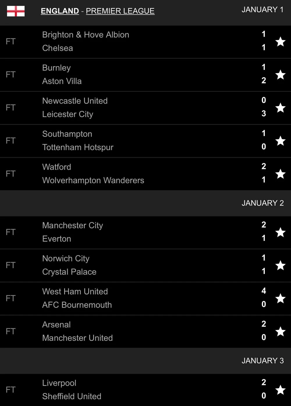 Giành chiến thắng với tỉ số 2-0 trước Sheffield United trên sân nhà, Liverpool tiếp tục một mình băng về đích với 20 trận bất bại kể từ đầu mùa. Sau 20 vòng đấu tại Premier League, Liverpool có được ngôi đầu bảng với 58 điểm, hơn đội hạng hai là Leicester City 13 điểm mặc dù thi đấu ít hơn 1 trận.