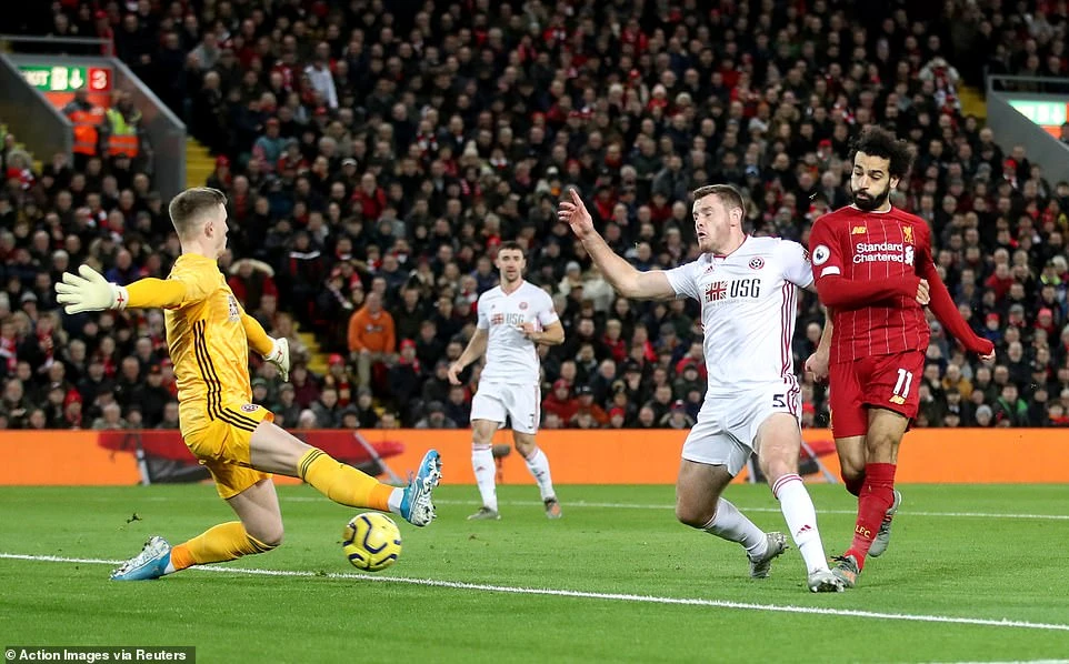 Đến phút 60, khung thành của Sheffield United chao đảo lần nữa từ pha treo bóng trước vòng cấm của Salah. Bóng từ chân tiền đạo người Ai Cập đi vọt tầm đánh đầu của Van Dijk nhưng lại đập trúng cột dọc khung thành làm đau tim CĐV Sheffield United.