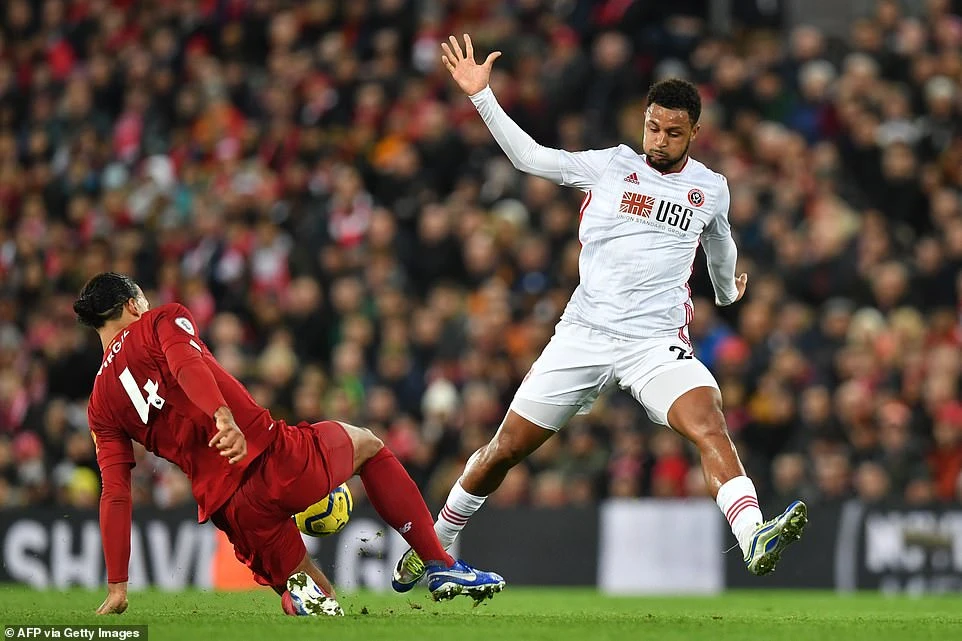 Sang hiệp 2, trung vệ Van Dijk suýt nâng tỉ số lên 2-0 cho Liverpool, từ tình huống đá phạt cố định Van Dijk chạy chỗ để đệm bóng cận thành. Nhưng trong pha bóng này, trung vệ người Hà Lan lại không có được tư thế thuận lợi để vung chân dứt điểm, bởi hậu vệ của Sheffield United theo kèm quá sát.