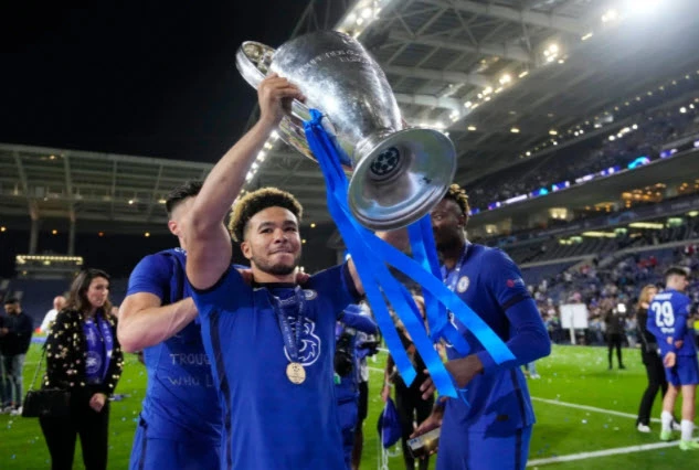 James nâng cao chiếc cúp vô địch Champions League giành cùng Chelsea mùa giải vừa qua. ẢNH: GETTY