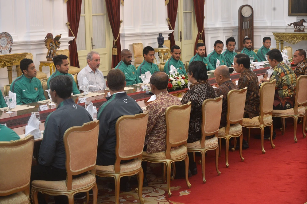 Tuyển Indonesia được Tổng thống Widodo tiếp tại dinh Tổng thống.