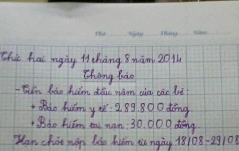Ngay lập tức, nhiều bạn facebook khác đã vào bình luận: “Khai bút kết hợp khai đao” hay “đọng lại trong chữ Tiền”; “cô giáo gây ấn tượng với cháu mạnh quá!”… Đây là những lời dặn dò của giáo viên chủ nhiệm với học sinh lớp 2 để các cháu mang về trình bố mẹ. Thay vì in sẵn, phát cho các cháu mang về cho bố mẹ, cô giáo đọc hoặc viết lên bảng để các cháu chép lại, như chép chính tả. Có thể là cách để cô giáo cho các cháu tập viết. Nhưng, tại sao lại bắt các cháu phải viết những điều này, những chuyện tiền bạc mà đầu óc non nớt của các cháu chưa hề nghĩ đến mà cũng không liên quan gì đến các cháu. Ở nhiều trường khác, theo tôi được biết, những khoản tiền đầu năm cần phải đóng, nhà trường đều có bảng thông báo đặt ngay phòng tài vụ, phụ huynh có thể liên hệ, xem và chuẩn bị để đóng cho con. Còn những gì liên quan đến các cháu như chuẩn bị tập sách, đồ dùng học tập thì giáo viên có thể đọc cho các con chép hoặc tự mình in sẵn một cái list để các con mang về cho ba mẹ chuẩn bị cho con mình vào năm học mới. Tôi thiết nghĩ, bài học đầu năm của các con sẽ là những điều hay lẽ phải, những câu chuyện của cuộc sống chứ không nên để các con phải đối mặt với chuyện tiền nong như thế này. TRÍ NHIÊN