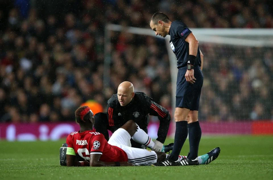 Pogba gặp chấn thương gân kheo trong trận MU thắng Basel 3-0 ở trận mở màn Champions League trên sân nhà Old Trafford. Mặc dù bác sĩ chỉ định Pogba không phải phẫu thuật nhưng tiền vệ người Pháp cũng phải mất một thời gian dài điều trị mới bình phục chấn thương. Mourinho hy vọng Pogba có thể hoàn toàn khỏe mạnh và ra sân trở lại trước tháng 12.