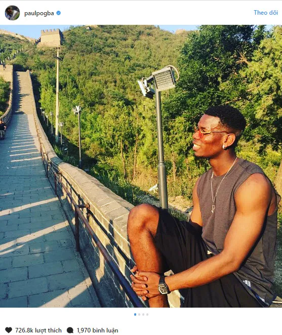 Du lịch tại Trung Quốc, Pogba liên tục up những tấm hình đẹp trên mạng xã hội Instagram. Người ta liên tục thấy Pogba khi thì ở Vạn Lý Trường Thành, lúc lại có mặt ở Tử Cấm Thành.