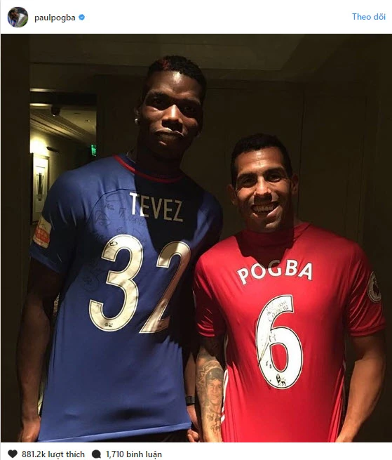 Những tấm ảnh chụp chung giữa Tevez và Pogba, hay những nơi Pogba đến du lịch luôn có cả triệu lượt like. Điều này cho thấy sức hút của ngôi sao MU là rất lớn.
