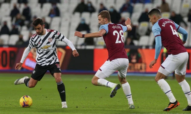 Bruno tạo ra 8 cơ hội chỉ trong 45 phút thi đấu trận MU hạ West Ham 3-1. ẢNH: GETTY